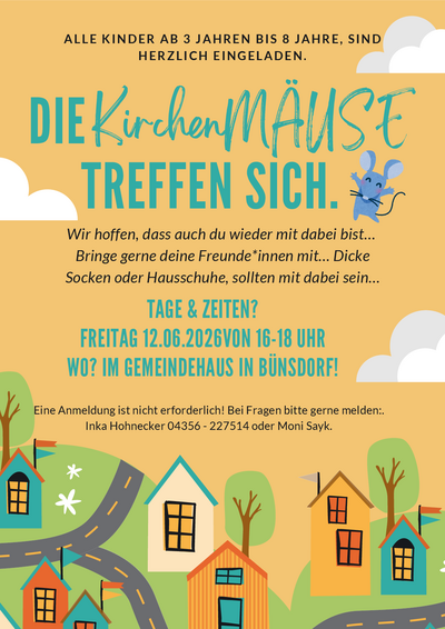 Wir treffen uns im Gemeindehaus Bünsdorf. Bitte bringt dicke Socken oder Hausschuhe mit.